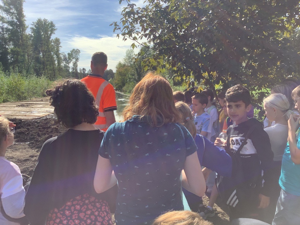 Am 25.9.23 wurde nach langen Umbauarbeiten die Niers im Breskespark in ihr neues Flußbett umgeleitet und damit die Renaturierung in diesem Teil der Niers abgeschlossen. Am Tag danach wurde dann mit der Abfischung der Fische in der alten Niers begonnen. Dieses wollte wir uns mit den beiden naturwissenschaftlichen Profilkursen der Klasse 6 anschauen. Gefangen wurden jede Menge Stichlinge, bis zu 1 m lange Aale, Karpfen und Hechte mit Hilfe von Strom. Diese wurden dann an der Ritterstraße wieder in die Niers geführt. Es wurden aber auch nicht heimische Fische gefischt. Diese wurden dem Gesetz entsprechend getötet und dem Tierpark Brüggen als Futter zur Verfügung gestellt. Wir konnten sehen, dass der Niersspiegel der alten Niers schon um ca. 50 cm gesunken war. In den nächsten Tagen wird weiter gefischt bis alles Wasser versunken ist. Weitere Tiere wie Muscheln und Krebse könnten noch gefunden werden. Die alte Niers soll dann mit Erde aufgefüllt werden. Den neuen Verlauf kann man an einigen Stellen gut sehen. Anstatt ca. 8m ist nie Niers dann nur noch 3 m breit. Kommt es zu Hochwasser, hat dieses nun genügend Platz sich in dem neuen Verlauf auszubreiten. Auch für Tiere und Pflanzen bietet der neue Verlauf viel bessere Lebenbedingungen.