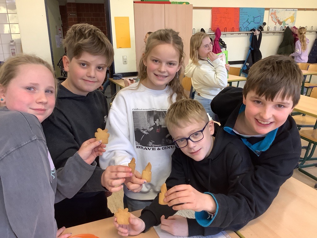 Kekse zum Karnevalszug: Passend zu unserem Kostüm im Karnevalszug möchte die 5a anstatt Kamelle zu schmeißen Kekskerzen und Keksgeschenke verteilen. Natürlich selbst gebacken.