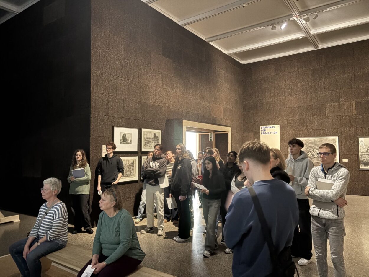 Kurz vor den Ferien waren die Grundkurse Kunst der Q1 im Museum Folkwang in Essen, um die beeindruckende Ausstellung „William Kentridge: Listen to the Echo“ zu besuchen. Der südafrikanische Künstler William Kentridge fasziniert mit seinen kraftvollen Animationen, Kohlezeichnungen und Installationen, die sich mit Themen wie Erinnerung, Geschichte und sozialer Gerechtigkeit auseinandersetzen. Die Werke regen zum Nachdenken an und eröffnen neue Perspektiven auf die Welt. Ein inspirierender Vormittag für uns, der viele kreative Ideen weckte und spannende Diskussionen anstieß, z.B, dass es wichtig ist, im künstlerischen Prozess offen zu bleiben. Listen to the Echo – in diesem Sinne hoffen wir, dass die Ausstellung noch etwas nachhallen wird.