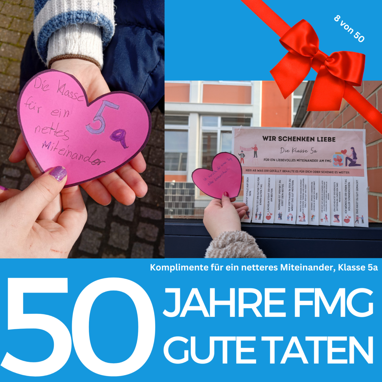 Statt einer klassischen Jahreschronik erarbeitete eine andere Projektgruppe ein „50 Jahre FMG Magazin“, das das aktuelle Schulleben auf moderne und anschauliche Weise präsentiert.